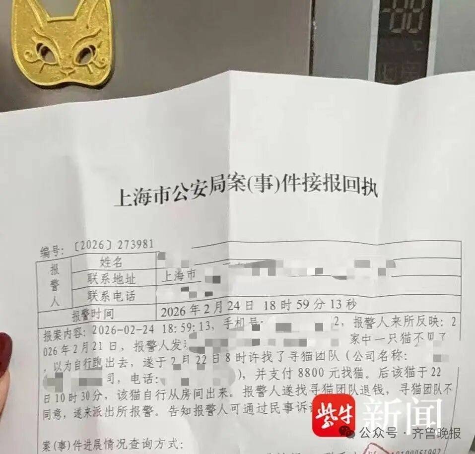 近日,记者从上海市民陈女士(化名)处了解到,她因误以为猫咪走失,联系了一家专业寻宠团队,先预付1000元定金、正式搜寻前又支付7800元尾款,共计花费8800元寻求寻宠服务。然而事后发现,猫咪并未离开办公室。陈女士要求对方退还尾款被拒绝。她认为此类高价寻宠服务名不副实,目前已报警处理,并委托律师准备提起诉讼。记者就此联系涉事寻宠团队,工作人员称正与当事人沟通协商。