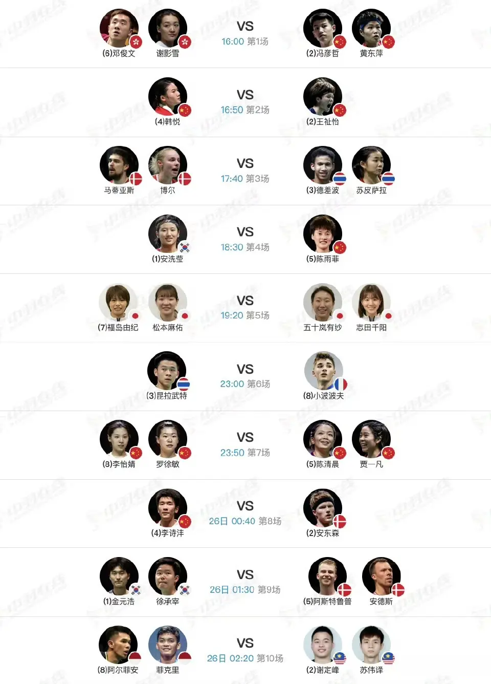 女单四强名单:中国队陈雨菲、王祉怡、韩悦,韩国队安洗莹。